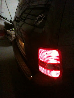 Then I stopped by the local PepBoys for a few new bulbs (Tina's car had a headlight and 2 tail lights out) and even though it took a little time and a quick check online to make sure I did in fact have to remove the battery AND coolant overflow to get to the headlamp bulbs, I got both headlights replaced and everything back together... (and now brighter than EVER with super halogens!)