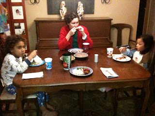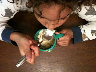 After dinner with the wife and kids, they eat ice cream - dispite the