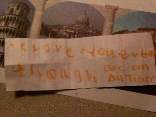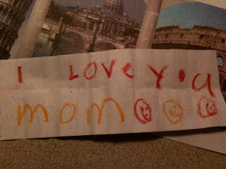 We were at an Italian restaurant instead of a Chinese restaurant, so Tina came up with the idea of "making" the kids their very own "fortunes" with their napkin/silverware wrap.