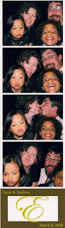 Carol and Andrew had a cool addition too, in the form of a Photo Booth!  They kept a copy for their guest book, and we got to keep a copy of the photo strips as a keepsake.  *(click the picture below to see it bigger!)