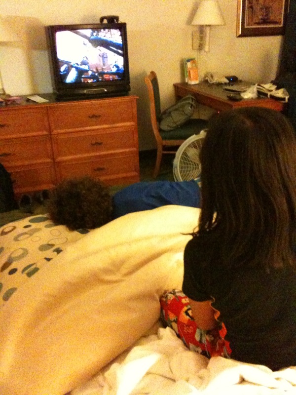 Kids enjoying a movie while we get ready.