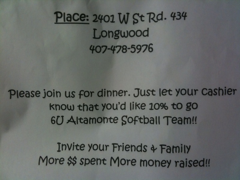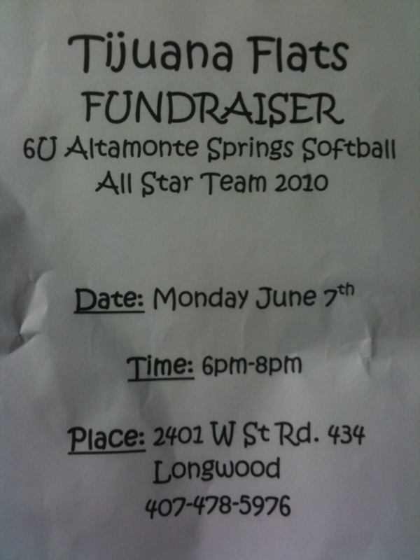 Time to eat Tacos, Burritos and cold beverages to help the 6-under Altamonte Springs All-Star team raise money to make the trip to Jacksonville to play in the State Championship Tournement! This Monday night in Longwood!