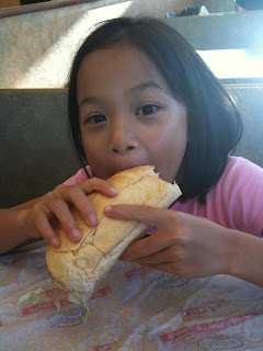 Halfway there, she chose Subway for dinner. She says she thinks it is good because it is so fresh. (great marketing even works on kids...)