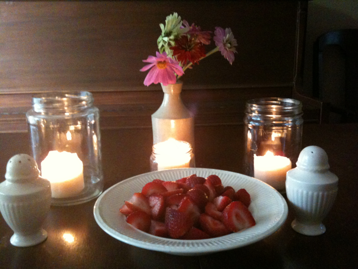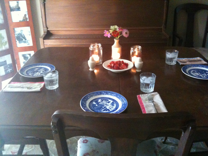 The napkins were hand sewn by Naomi today. It her newest hobby!