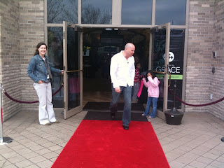 Celebrating the 7th anniversary of our wonderful church, Grace Fellowship, this morning, by greeting guests with a real Red Carpet treatment! (That is our pastor, Mike Adkins on the carpet too by the way)