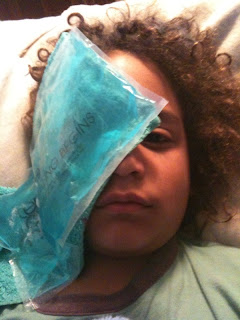 I got a frantic call at work today from Tina about Eli. He had been playing under his bed and apparently gotten something in the eye or poked because Tina saw a large cut on his eye. I rushed home to help her as she prepared to take him the ER. Once I got home, using a magnifying glass, I was able to see that it was not a cut, but something on his eye.